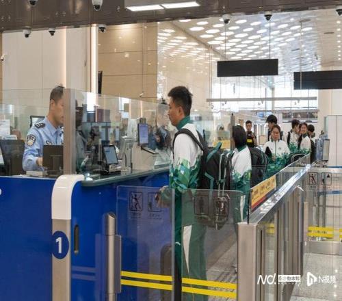 作为十五运会东道主的广东、香港和澳门队也于今日陆续抵达横琴,中午12时许,澳门代表队一行经横琴口岸过关,十五运会网球竞委会综合协调处副处长苏凯慈前往迎接并送上鲜花。