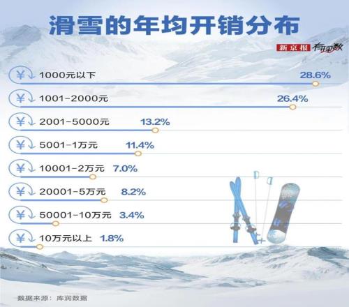 体验型消费者占多数的情况下,大多数滑雪新手决定从“穷滑”开始尝鲜,在一项关于滑雪者的年均花费中,近1/3的人群消费在千元以下。雪票价格是这部分人群判断滑雪贵不贵的最直观标准,这也是为啥有人觉得滑雪便宜的原因。