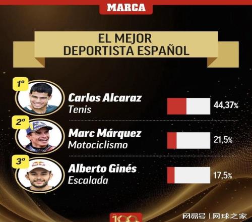 阿尔卡拉斯在这一奖项中的得票率领先Moto GP传奇车手马克·马奎斯和2020年东京奥运会攀岩冠军阿尔贝托·吉内斯之前,这一结果体现了球迷们对这位网球新星的高度认可。马奎斯在2025年Moto GP赛季中表现出色,多次登上领奖台,而吉内斯则在攀岩世界杯系列赛中保持了卓越的竞技状态,但阿尔卡拉斯在全球范围内的卓越成就和影响力最终赢得了球迷们的青睐。