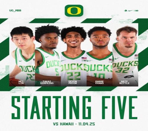 在11月5日进行的NCAA常规赛中,俄勒冈大学在半场结束时以31-25领先夏威夷大学。林葳在上半场的表现为他首发出...