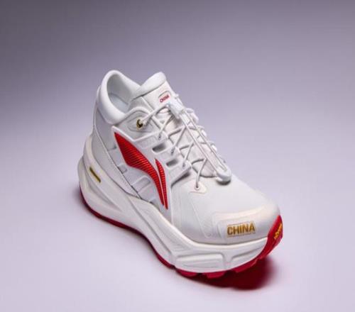 领奖鞋与领奖服配色一致,基于李宁“烈骏”系列进行设计,汲取战马的肌肉和骨骼作为设计灵感,寓意中国运动健儿在马年赛场“马到成功”。领奖鞋采用中底科技“超䨻”,鞋大底具备良好的防滑抓地力,鞋面也采用了防泼水和轻防污面料。