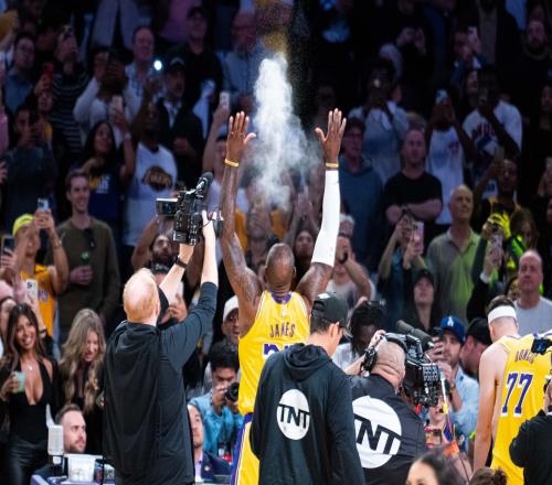他幻想的画面中,名流云集,如知名说唱歌手Jay-Z坐在场边,票价也因这场历史性的比赛而飙升至一万美元,整个球馆的气氛都在为勒布朗的最后一战而沸腾。