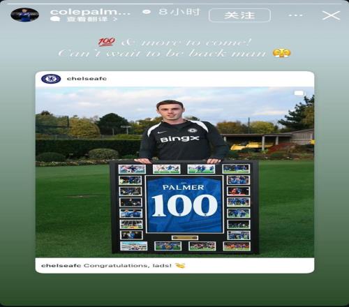 雷速体育10月29报道 今日,切尔西球星帕尔默在社交软件上晒出自己的切尔西百场纪念球衣。并感叹道:“还会有更多,迫不及待想回归了!”