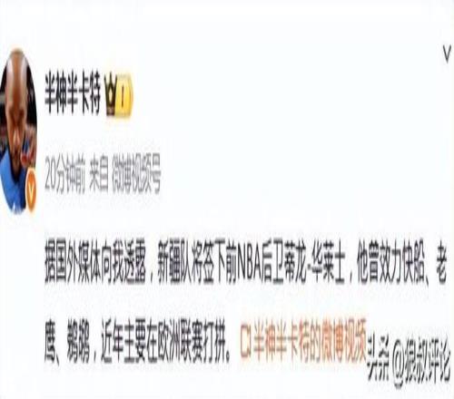 北京时间11月11日,根据媒体人“半神半卡特”发文:新疆队将签下前NBA后卫蒂龙·华莱士,他曾效力快船、老鹰、鹈鹕,近年主要在欧洲联赛打拼。