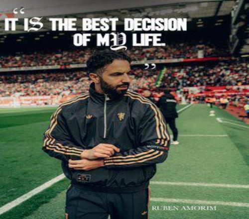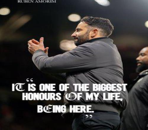 曼联官方晒图并写到:“一年前,鲁本·阿莫林成为我们的主教练!”
