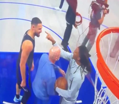 当时,因伤没出战的莫兰特上前挑事,他表示小牛队的老将汤普森什么都不是,不仅用手指着汤普森,还说汤普森是“废物”。汤普森自然是生气的,他用手打开了莫兰特的手,差点引起冲突,两人很快被拦开。