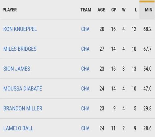 更让人震惊的是,黄蜂最强的五人组——三球、克尼普尔、米勒、布里奇斯、迪亚巴特——在半个赛季已过的情况下,只在17场比赛出现过。